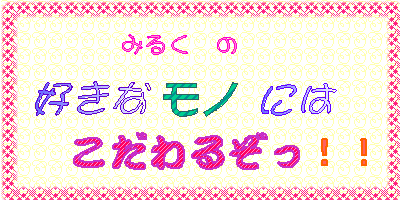 | 人はみんな、何かしら好きなものがあって、色んなこだわりを持ってる と思うんだけど、私みるくにも、そういう ”こだわってるモノ” が幾つかあります。 ここでは、そういった みるくのこだわっているもの、ハマッているもの 大好きなものについて 色々書いていきたいと思います。 |